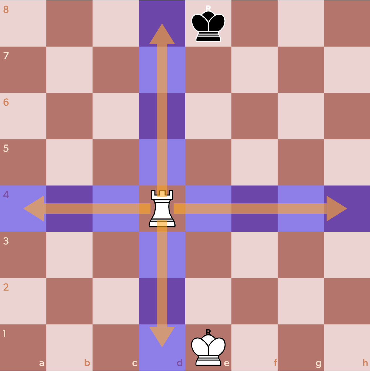 Let’s look at the next most powerful piece, the rook, and consider why the rook is more valuable than the bishop or knight. For one, the rook shares part of the queen’s great mobility: